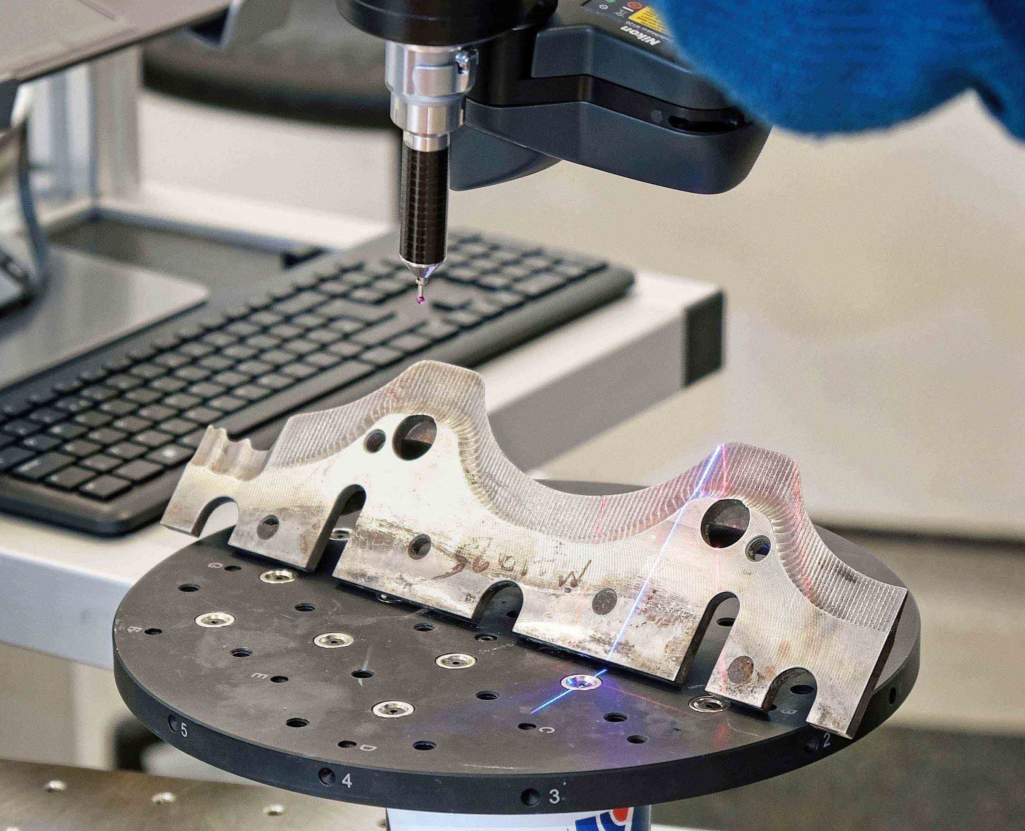Superseding a smaller and now unsupported arm and touch probe, which was used alongside conventional, manually-intensive metrology equipment like callipers and height gauges, the new inspection area comprises a seven-axis, multi-sensor Freedom Arm Classic Scan with a 2.73-m reach equipped with a touch probe and an H120 laser line scanner, which since the end of 2023 has been manufactured by LK following its acquisition of Nikon Metrology’s laser scanner hardware and software business. Together with a rotatable, 300 mm diameter Freedom index table, the lightweight carbon-fibre arm is mounted on a metrology table, with all elements supplied by LK. Additionally, Innovmetric’s PolyWorks Inspector software was purchased from reseller 3D Scanners UK to provide advanced point cloud analysis, evaluate surfaces, measure geometrical features, generate coloured heat maps for part-to-CAD or scan-to-scan comparisons, and generate full reports.